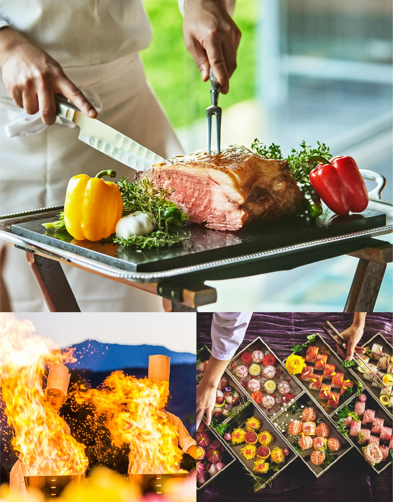 シェフの手仕事から立ちのぼる香り、焼き上がる音、湯気、笑顔――。ライブ感あふれる料理演出は、その瞬間にしか生まれない特別な時間。五感で味わう祝福が、ゲストの記憶に残ります。