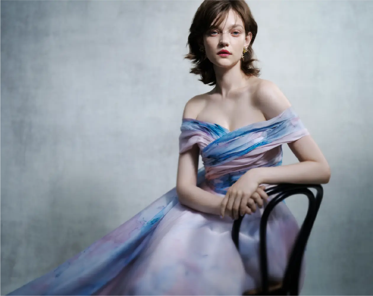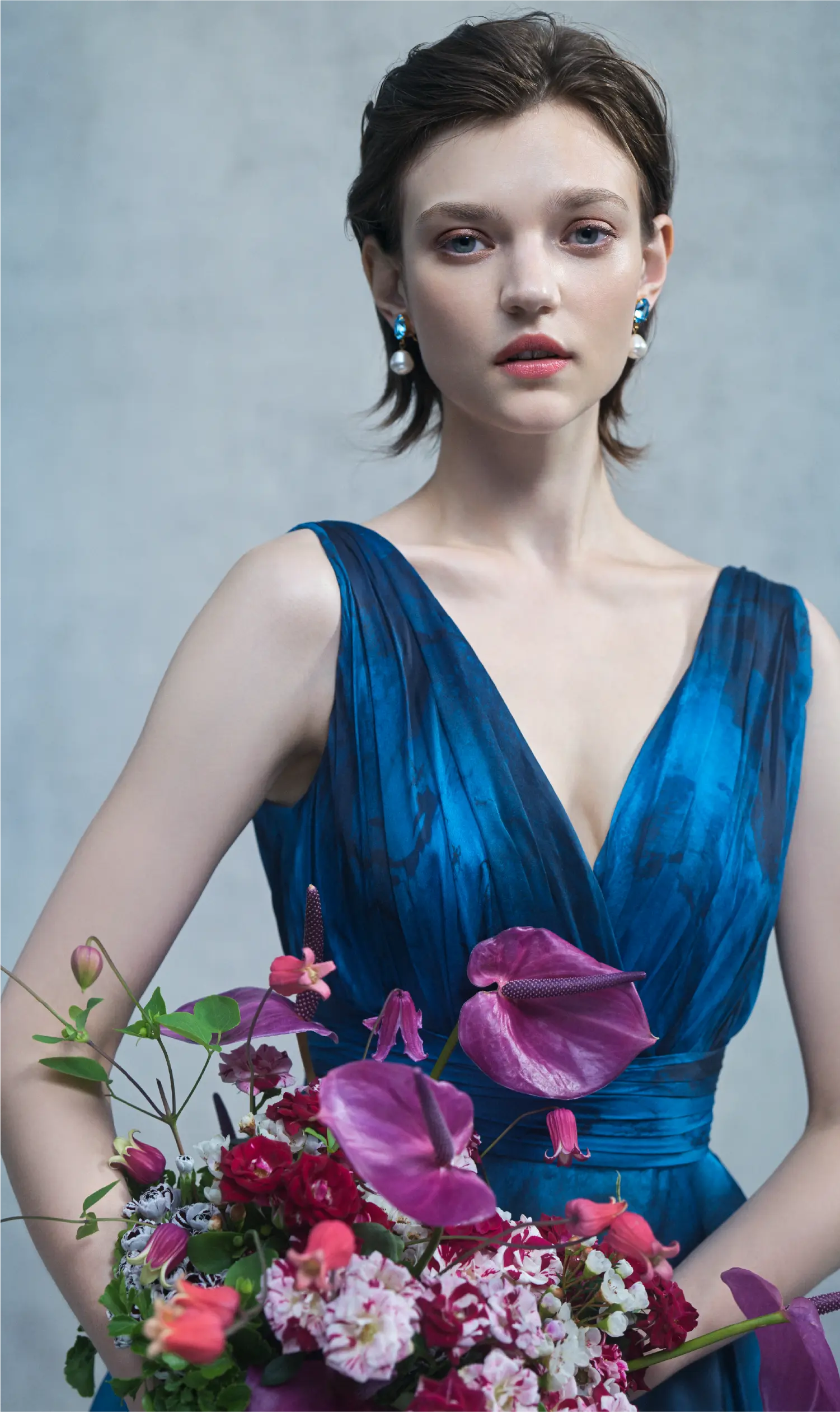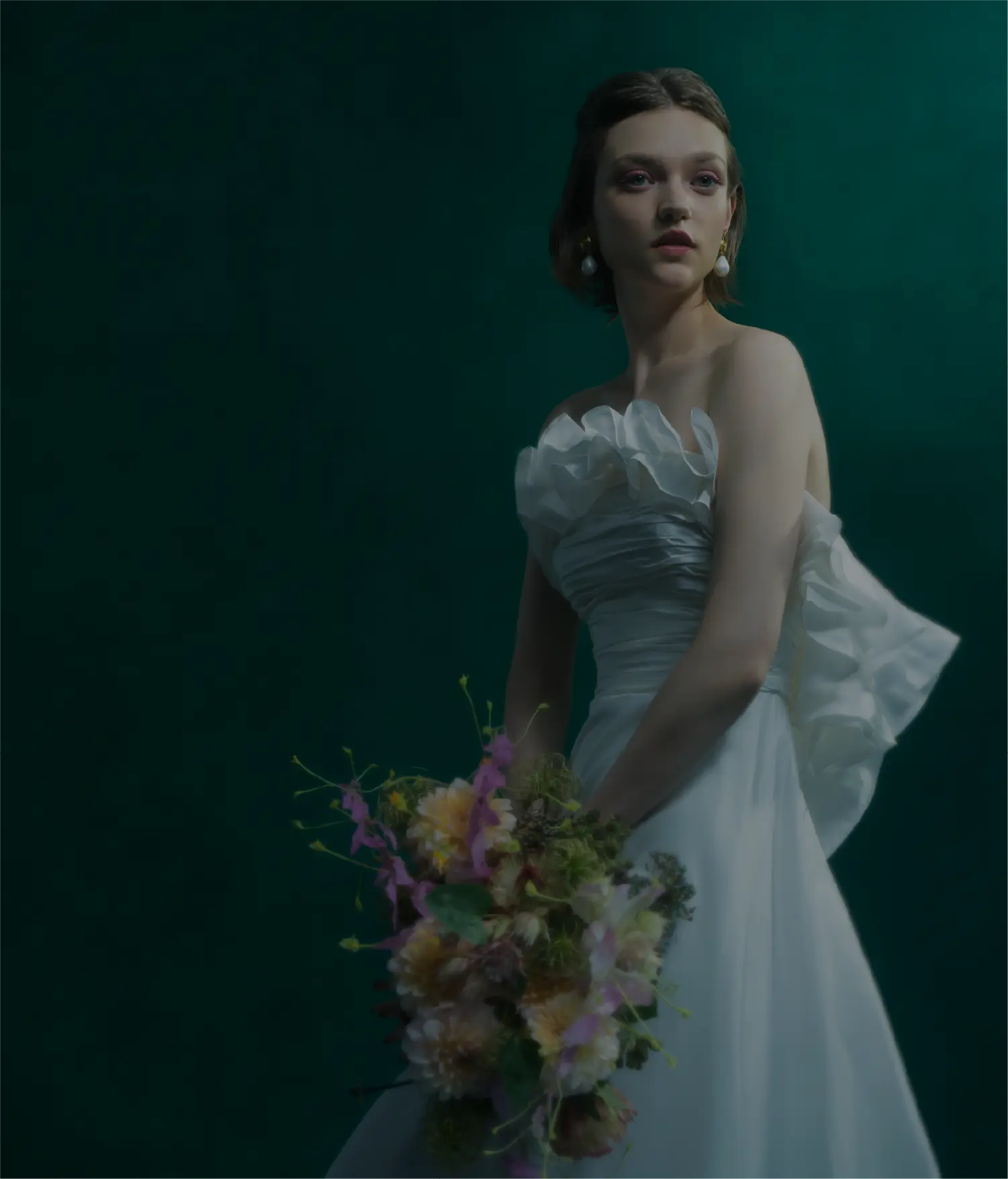 自然体のまま何色にも染まっていないからこそ、憧れの姿を自由に思いのままに。特別な一日にあなたらしい華やかさを纏っていただきたい。花嫁の憧れを叶えるトレンドのデザインやカラーを取り入れたアイテムで、幸せのコーディネートのお約束をします。