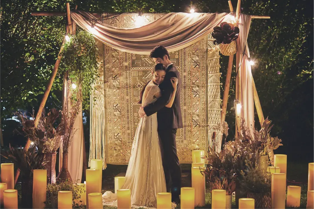 風と光が織りなす神秘的な空間がふたりを迎える。
